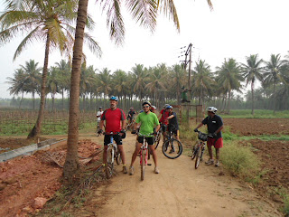 11 of us -- Arun, Larrie, Madan, Rajesh, Rubi, Samik, Sanjay, Siva, Srini, Sunil, Vallari -- went for the ride this morning. The sole woman called it 10 boys who like wet muddy conditions and one girl who does not. We left at 6.15 am and returned at 10.10 am completing 31km for those who are numerically inclined.